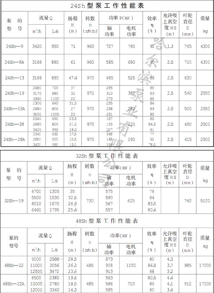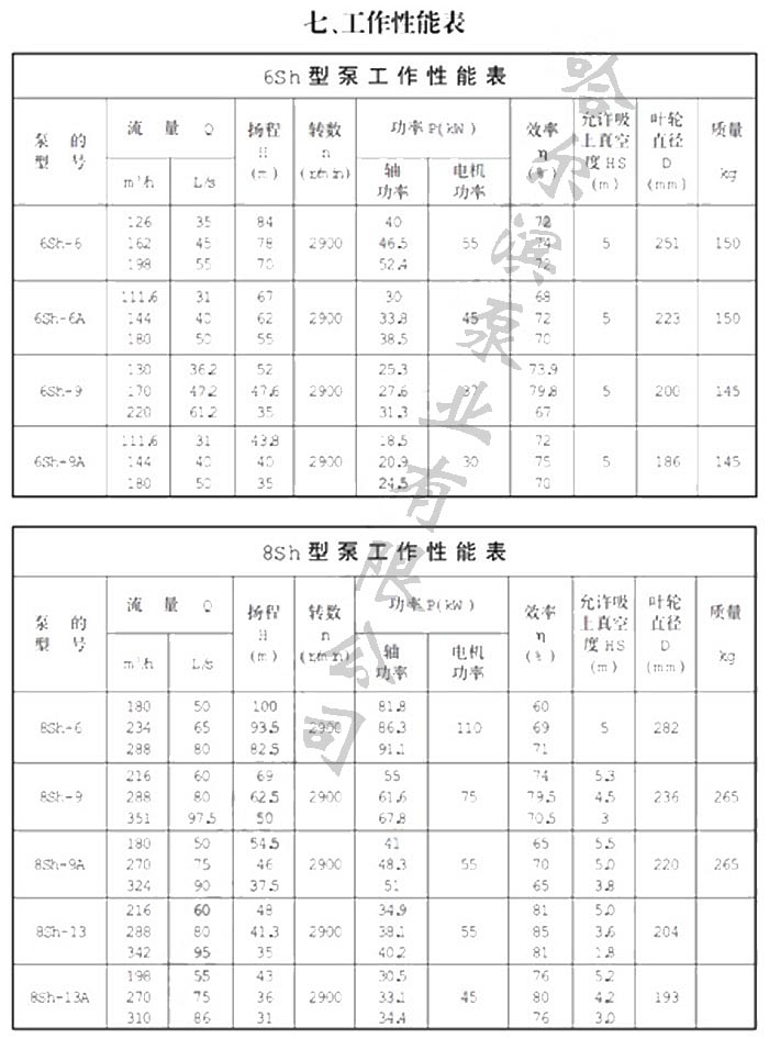 Sh型輸送介質(zhì)的最高溫度不得超過(guò)80℃。適用于工廠(chǎng)、礦山、城市給水、電站、大型水利工程、農田灌溉和排澇等。