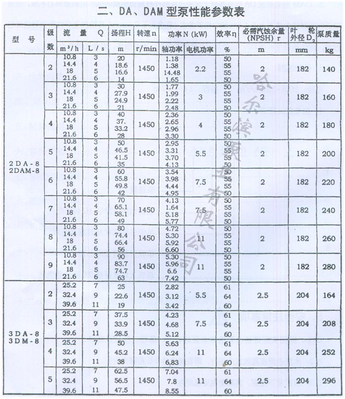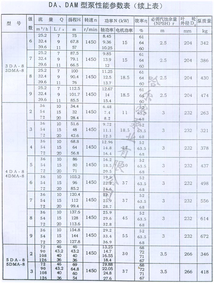 DA型多級離心泵